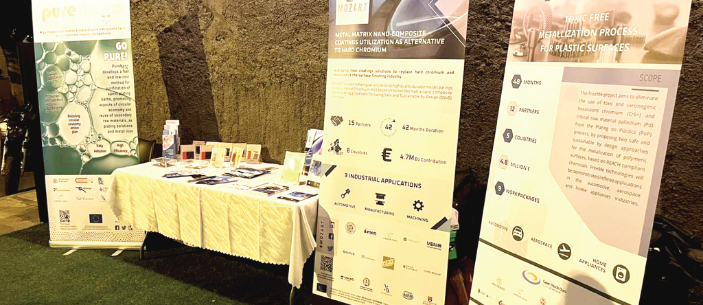 We are happy for our citizen engagement event on plating technologies that took place yesterday! Creative Nano had a dissemination corner highlighting the plating technologies and the Safe and sustainable by-design approaches they are following. Our EU projects FreeMe project, MOZART EU Project, PureNano Project, NanoPAT and SABYDOMA were there!!!